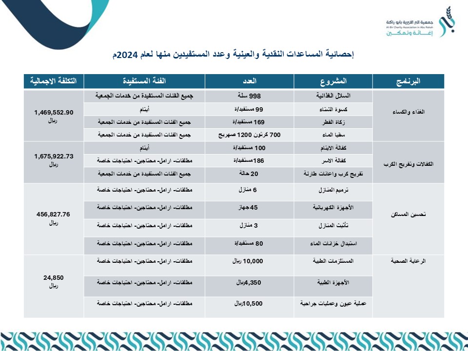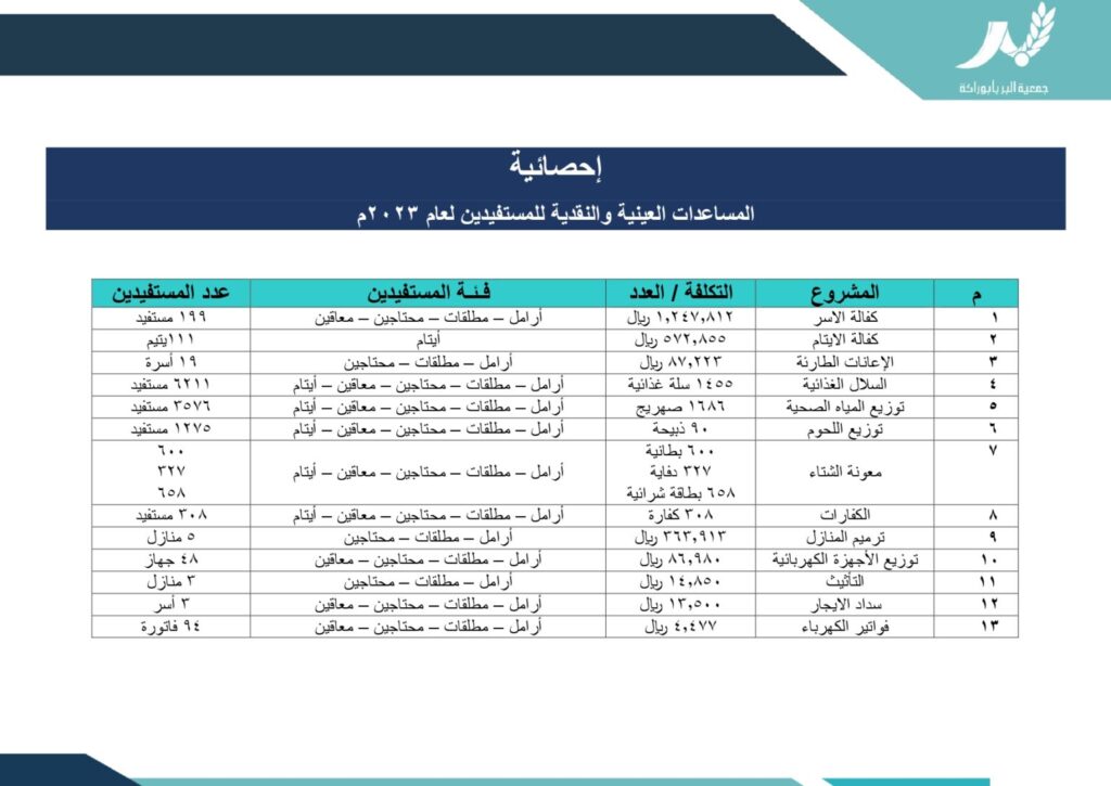 احصائيات المساعدات العينية والنقدية للمستفيدين